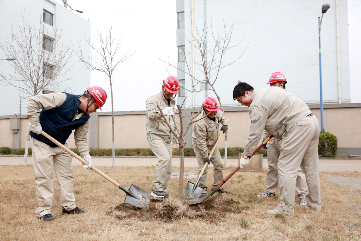 植树现场,党员及青年代表纷纷拿上工具,挖坑、施肥、栽树、填土、浇水,每一个环节都有条不紊地进行着。在大家的共同努力下,18棵碧桃很快在厂区“安家落户”,为这片土地增添了一抹生机勃勃的“新绿”。