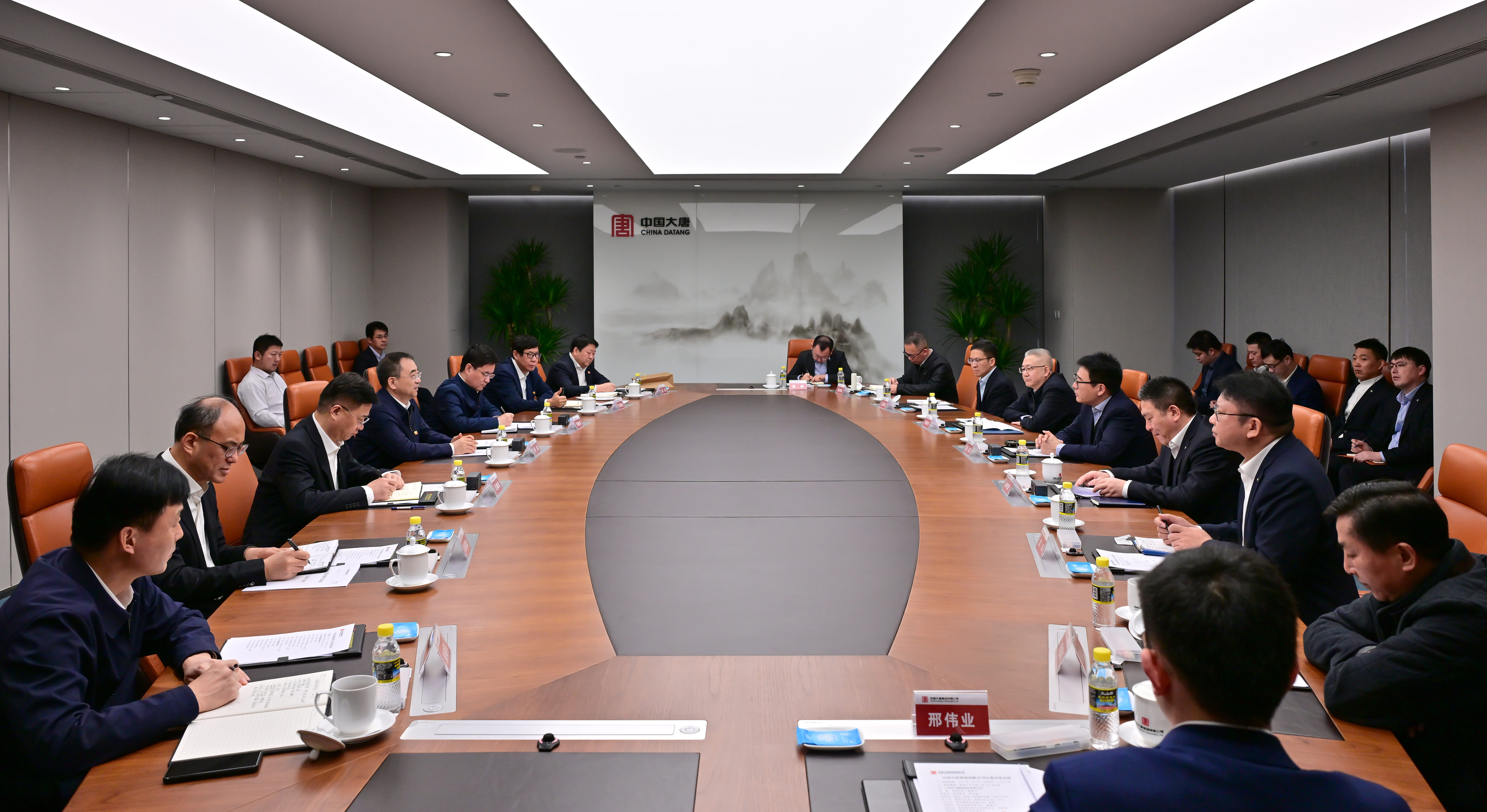邹磊对吴磊一行到访中国大唐表示欢迎,对上海电气生产经营取得的成绩表示祝贺。邹磊表示,2024年,中国大唐统筹推进质的有效提升和量的合理增长,全年利润总额、年度新增装机容量、总装机规模迈上新台阶。当前正推动存量增效、成本领先、增量做优、晋位升级,奋力推进“二次创业”向纵深发展。中国大唐与上海电气合作关系良好、互动交流密切、合作空间巨大。希望双方围绕服务国家重大战略需求,发挥各自优势,进一步在科技创新、资源获取、设备供应等领域巩固深化能源产业链合作,助力新型能源体系和新型电力系统建设,携手实现共赢发展。