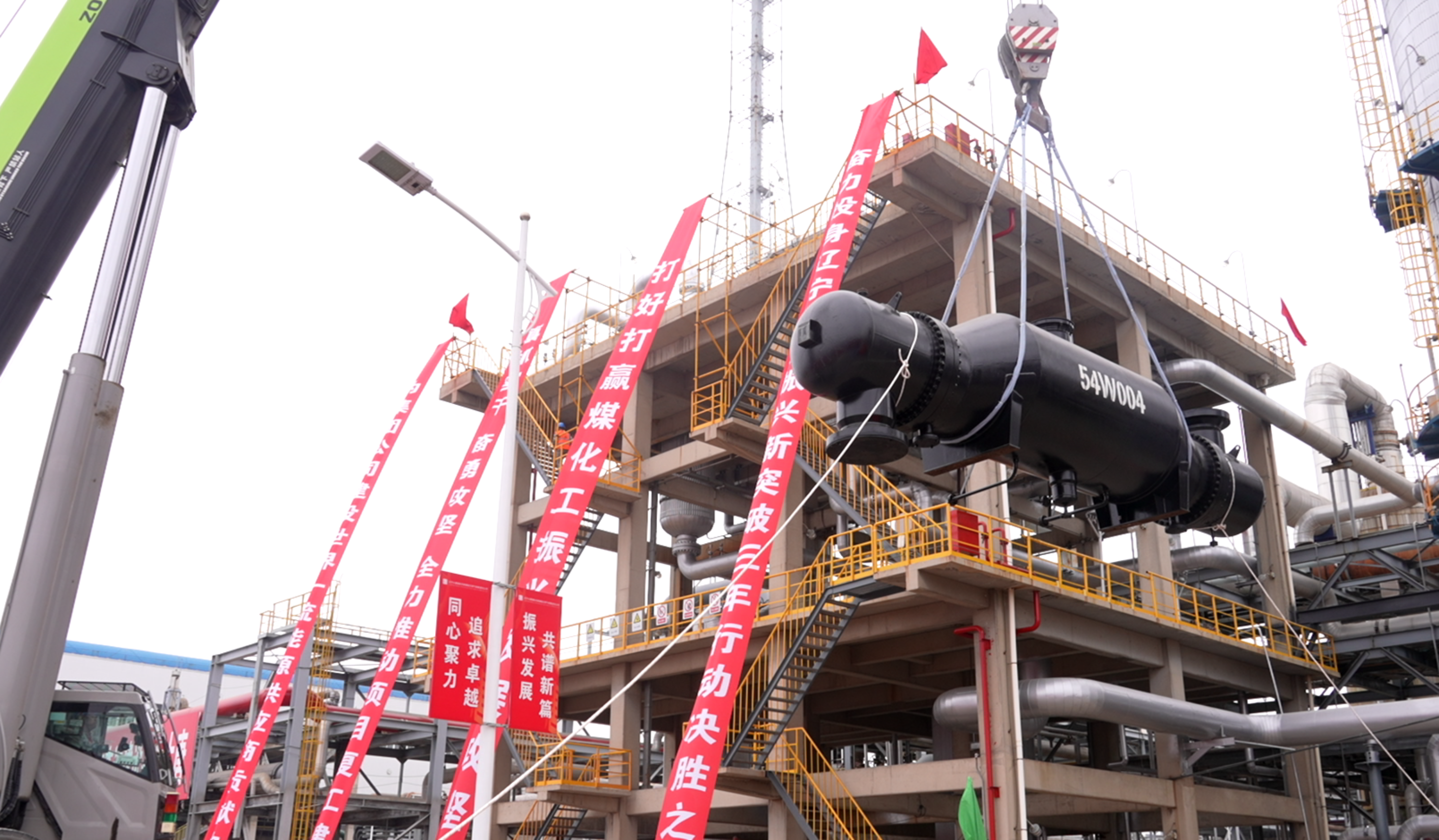 本网讯 10月15日上午,在中国sunbet申搏官方网站阜新煤制天然气项目复工建设动员会现场,随着最后一项大型装备吊装作业顺利完成,项目进入全面复工建设阶段。