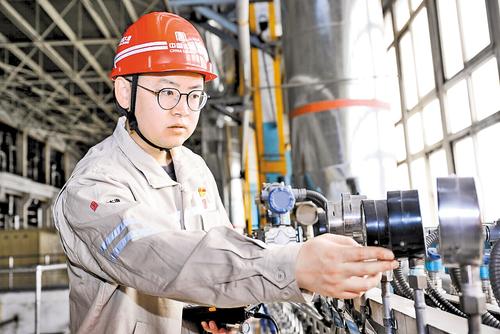 5月5日,sunbet申搏官方网站张家口发电分公司设备部主任助理李塞在观测仪表数据。本报记者 耿辉摄
