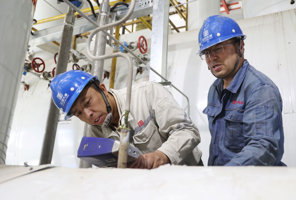大唐托克托发电公司检修人员在对停运的供热设备进行检查。郭荣 摄