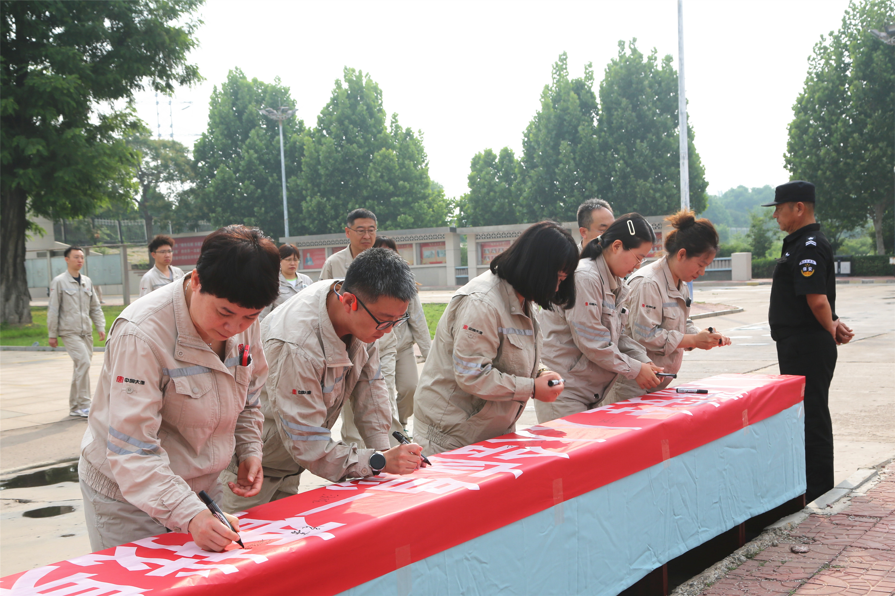 活动中,全体人员在印有“安全生产月”主题的红色横幅上郑重承诺签名,工作人员为职工发放了印有安全生产、应急救援知识等的宣传手册、扑克牌、应急求生哨、鼠标垫、团扇等纪念品,将启动会推向高潮。
