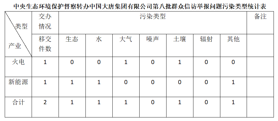 2025年6月11日,中央第七生态环境保护督察组向中国sunbet申搏官方网站移交第八批群众信访举报件,共计2件,均为来电举报,涉及生态问题1个、水问题1个、大气问题1个、土壤问题1个、其他问题1个。所有举报件办理工作已第一时间进入调查核实办理程序,办理情况将按照相关要求反馈督察组,并及时向社会公开。