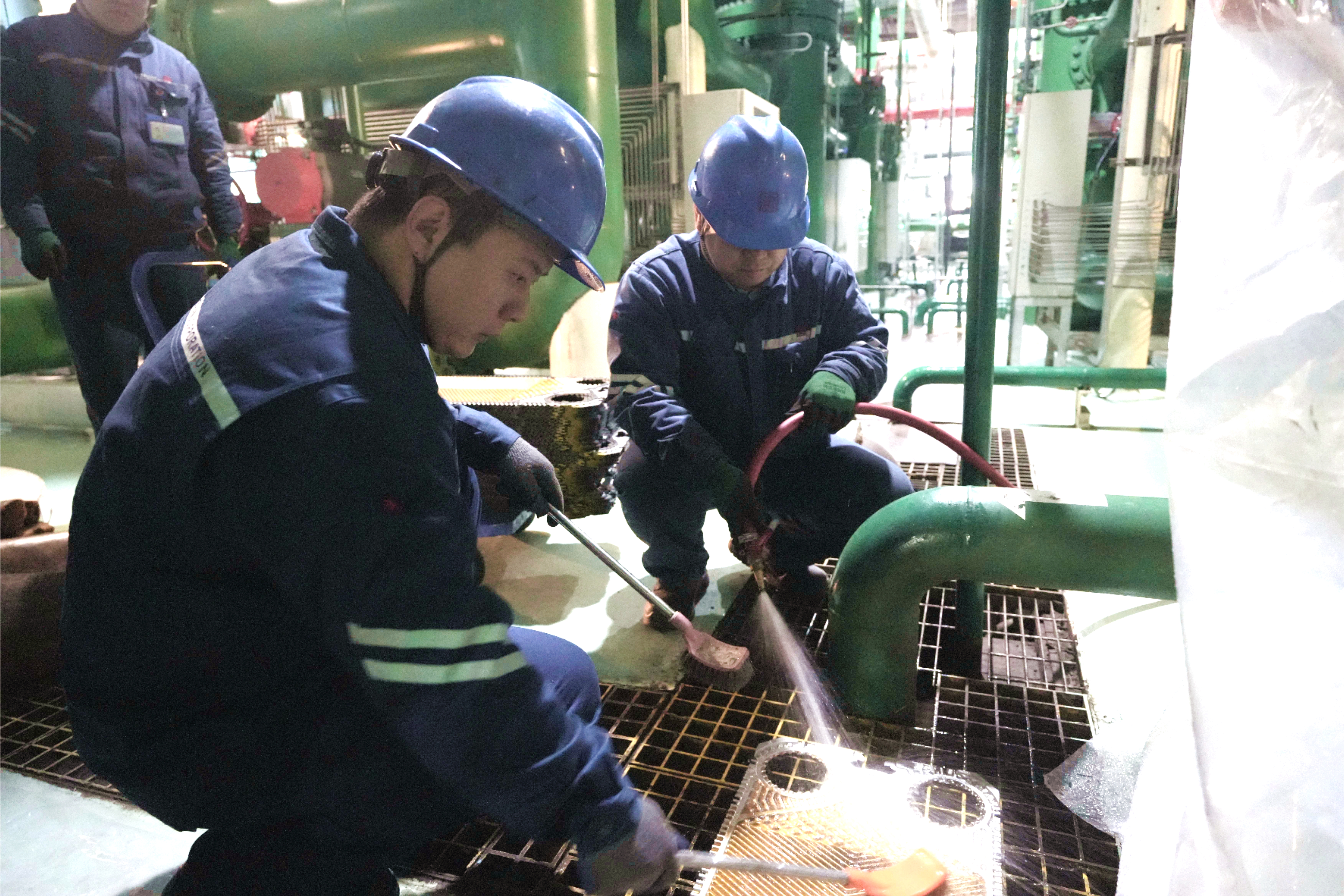 检修前两天一切按照计划工作进行,到了第三天,问题就来了。“芯包卡涩严重,无法直接拉出。”检修技术员秦玉海的声音从设备的另一侧传来。薛凯强快步走过去,蹲下身,手电筒的光束照在芯包与壳体的结合面上——一层厚厚的锈蚀像顽固的枷锁,死死咬着紧密无间。秦玉海已经尝试铜棒敲击和液压千斤顶芯包,甚至小心翼翼地用撬棍试探,可芯包纹丝不动。