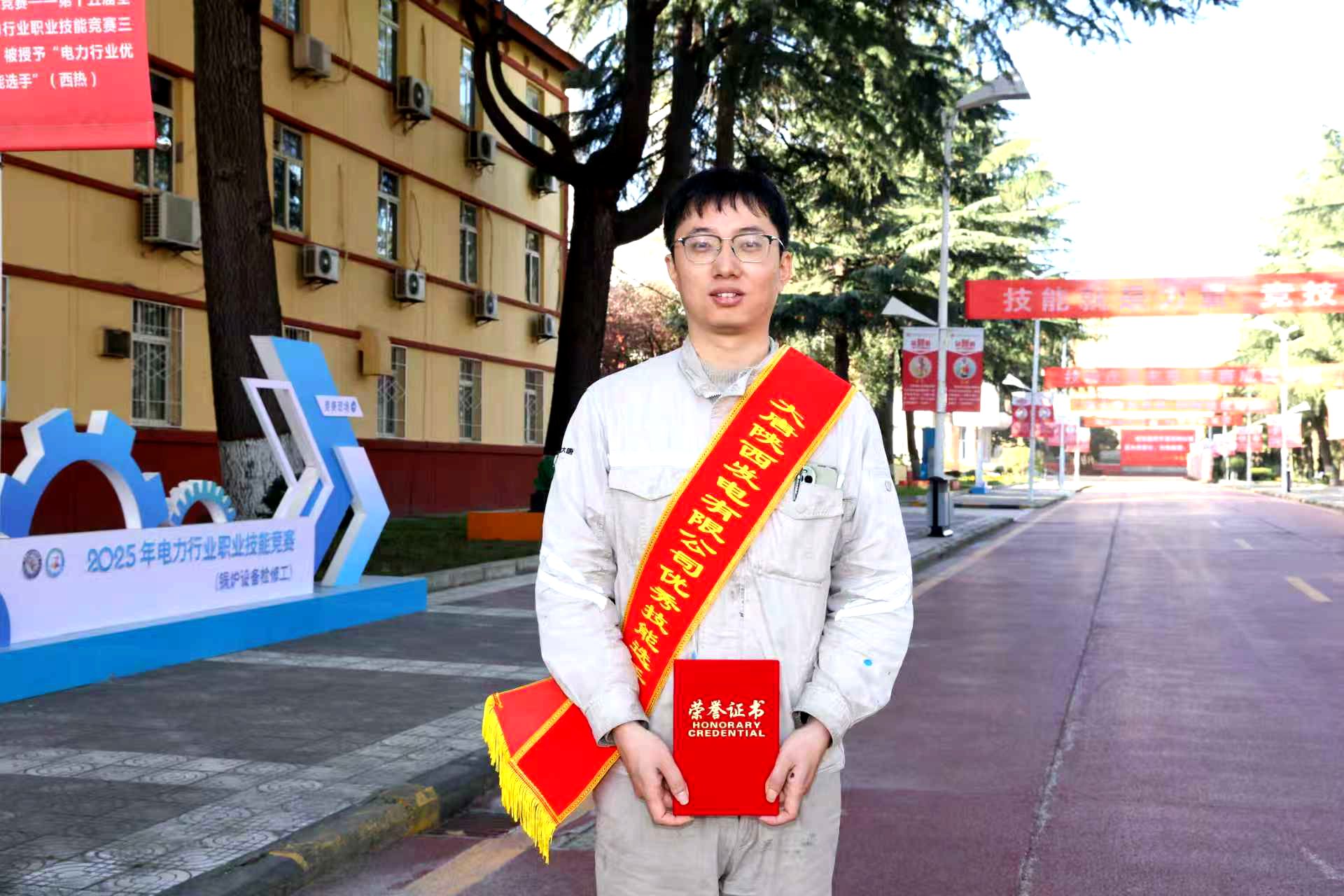 在陕西省“大唐杯”职业技能竞赛(热工控制专业)决赛中,杨帆始终以沉稳自信的心态应战。在涵盖理论知识、DCS组态、识绘图配线、气动执行机构实操等多项高难度考核中,他凭借规范严谨的操作流程、精准高效的技术把控和快速破题的解决能力,在众多强手中脱颖而出,成功获评“优秀技能选手”称号。