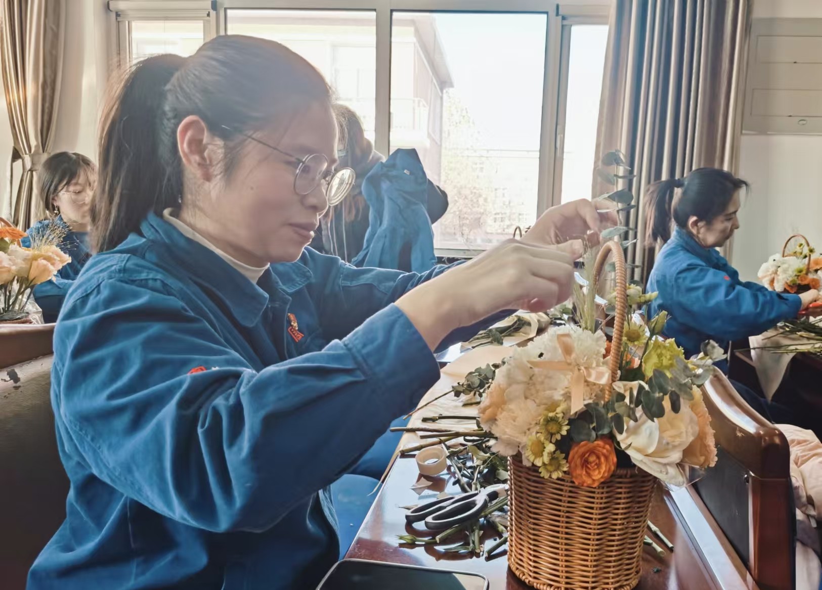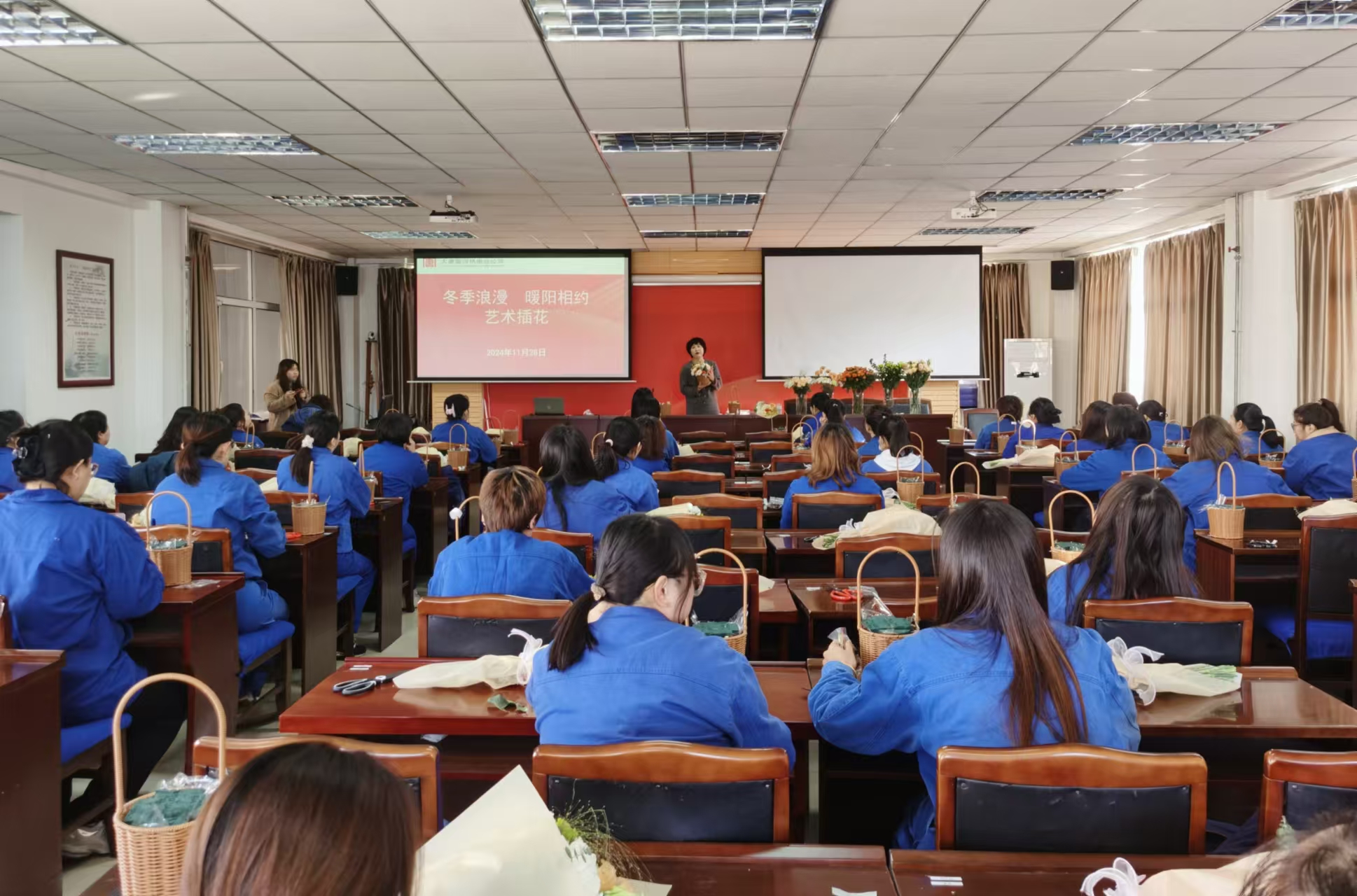 本网讯 为进一步丰富关爱女工工作的服务形式和内容,11月28日,陡河热电公司在培训中心二楼会议室组织60余名女职工,开展“冬季浪漫 暖阳相约”艺术插花活动。