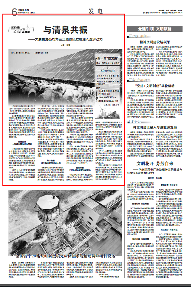 [中国电力报]与清泉共振 ——大唐青海公司为三江源绿色发展注入澎湃动力