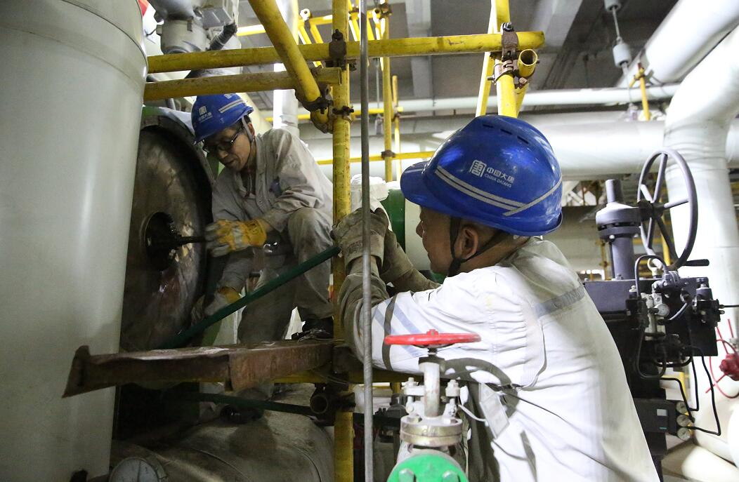 早在上个供热季结束后,该公司及时开启“健康体检”“冬病夏治”模式,全面梳理供热系统存在的隐患,深入分析影响安全供热的各类问题和风险因素,充分利用1号、2号机组C级检修的良机,组织实施设备维护和优化改造工程,全面消除安全隐患,先后完成了汽机密封瓦检查、电动热网循环泵大修、热网小机排汽风机更换等项目。