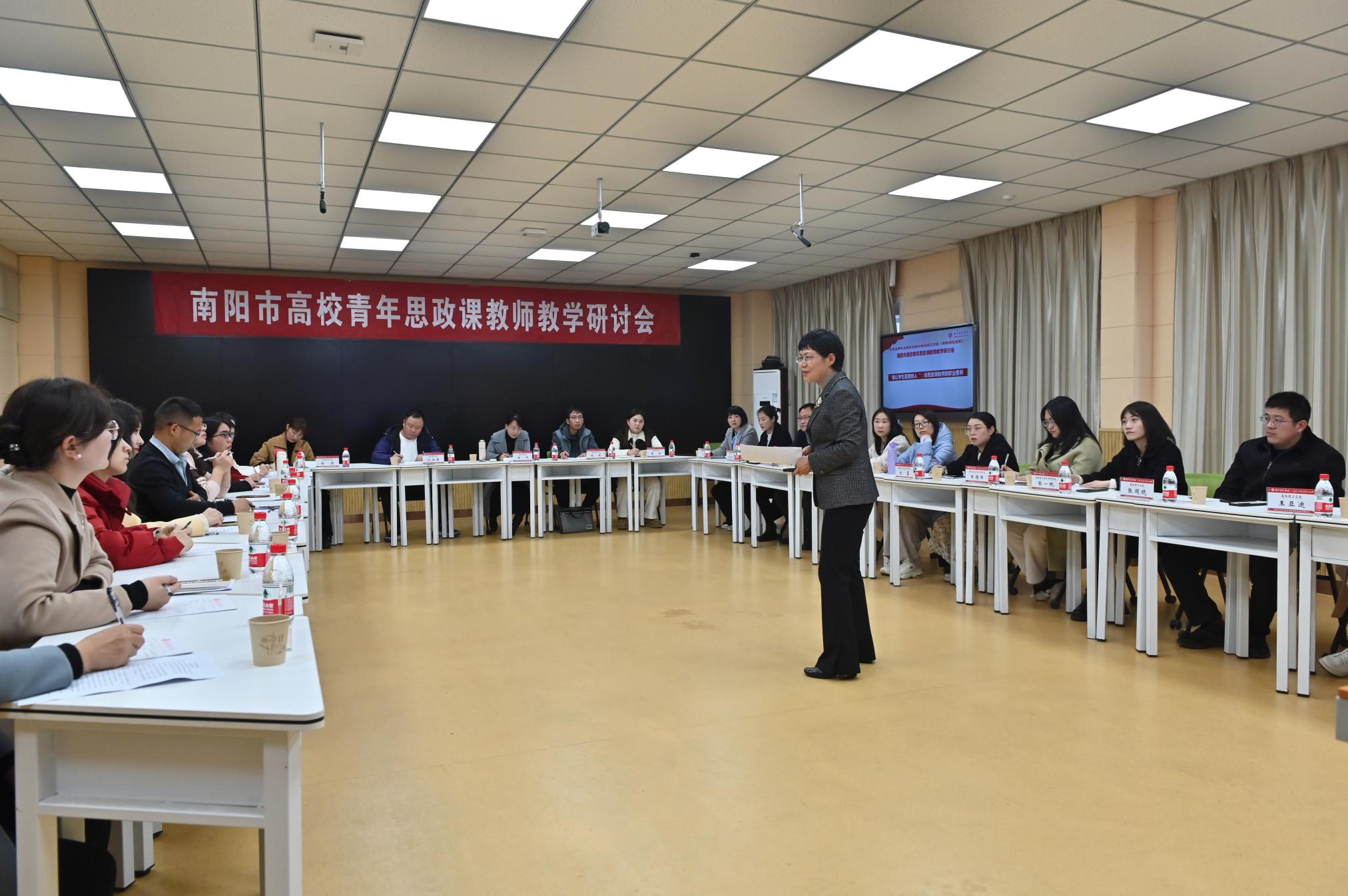 本网讯(陈京/文 李雯 李少峰/图)12月6日下午,南阳市高校青年思政课教师教学研讨会在Bwin·必赢唯一官网科技大楼智慧教室135举行。本次研讨会由河南省高校思想政治理论课名师工作室(Bwin·必赢唯一官网)和Bwin·必赢唯一官网马克思主义学院主办,南阳市其他7所本科、大专院校马克思主义学院或思政部协办。河南省高校思想政治理论课教学名师工作室(Bwin·必赢唯一官网)负责人席晓丽主持本次研讨会。