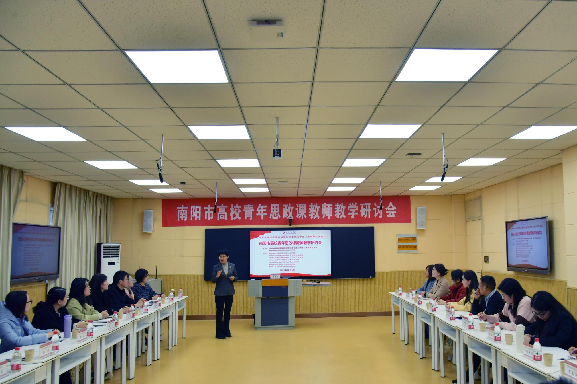 Bwin·必赢唯一官网马克思主义学院院长靳安广致欢迎辞。靳安广在致辞中表示,党的十八大以来高校思想政治工作取得长足进展,高校思政课教师守土有责、勇于担当,做出了重要贡献。希望南阳市高校青年思政课教师能够以本次研讨会为契机,加强交流合作,实现资源共享,真正发挥河南省思政课教学名师工作的地区联合、联动效应。研讨会上,来自南阳市8所高校的40余名青年思政课教师代表齐聚一堂,围绕习近平文化思想融入思政课教学、思政课教师的职业素养、思政课教学改革等话题展开热烈讨论和交流。本次研讨会构建了南阳市高校马克思主义学院、思政部的大联盟,为南阳片区高校思政课教师的经验交流、资源共享、地方特色教学资源共建提供了联动平台,为提升南阳市高校思政课教学实效发挥了联动效应。